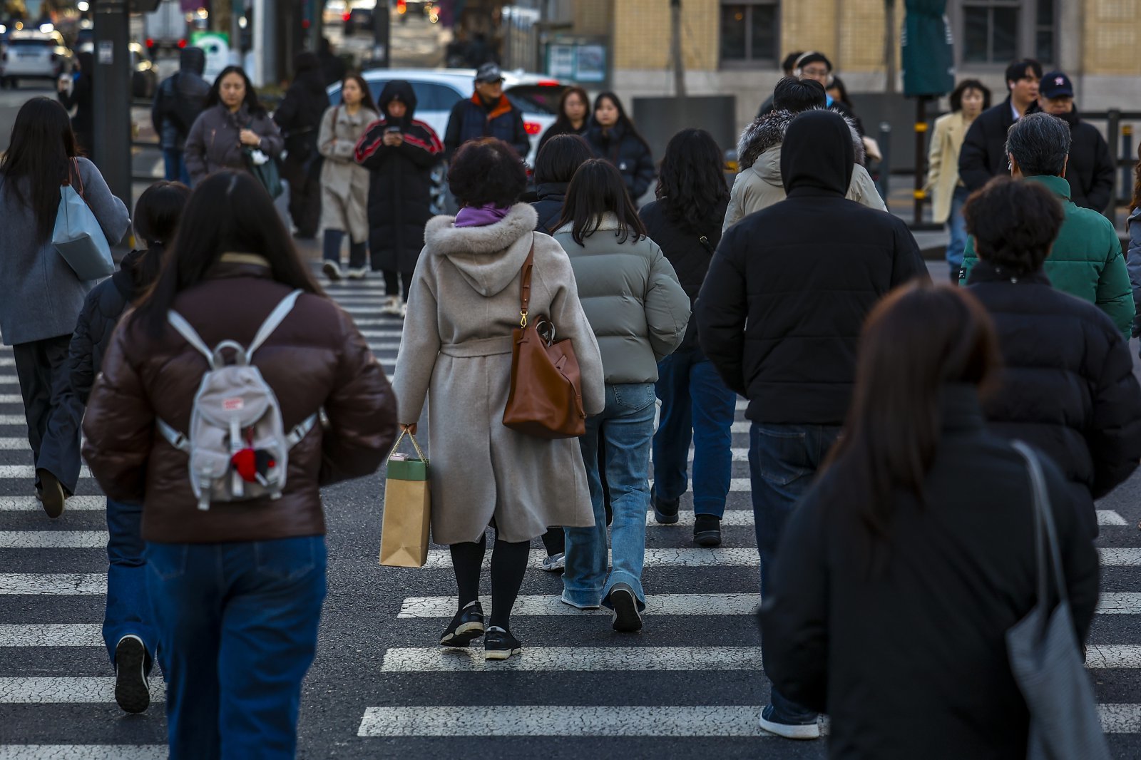 설 연휴가 지난 19일 서울 종로구 광화문네거리에서 시민들이 이동하고 있다. 2026.02.19. 서울=뉴시스