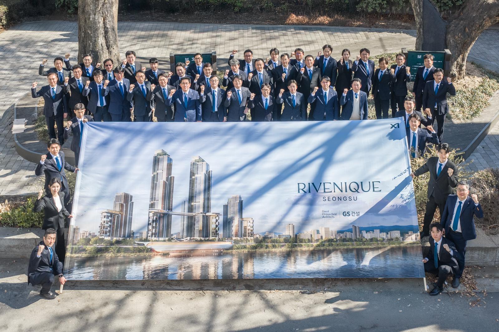 19일 GS건설 임직원들이 성수1지구 입찰서류 및 보증금을 제출하고 현장에서 각오를 다지고 있다. GS건설