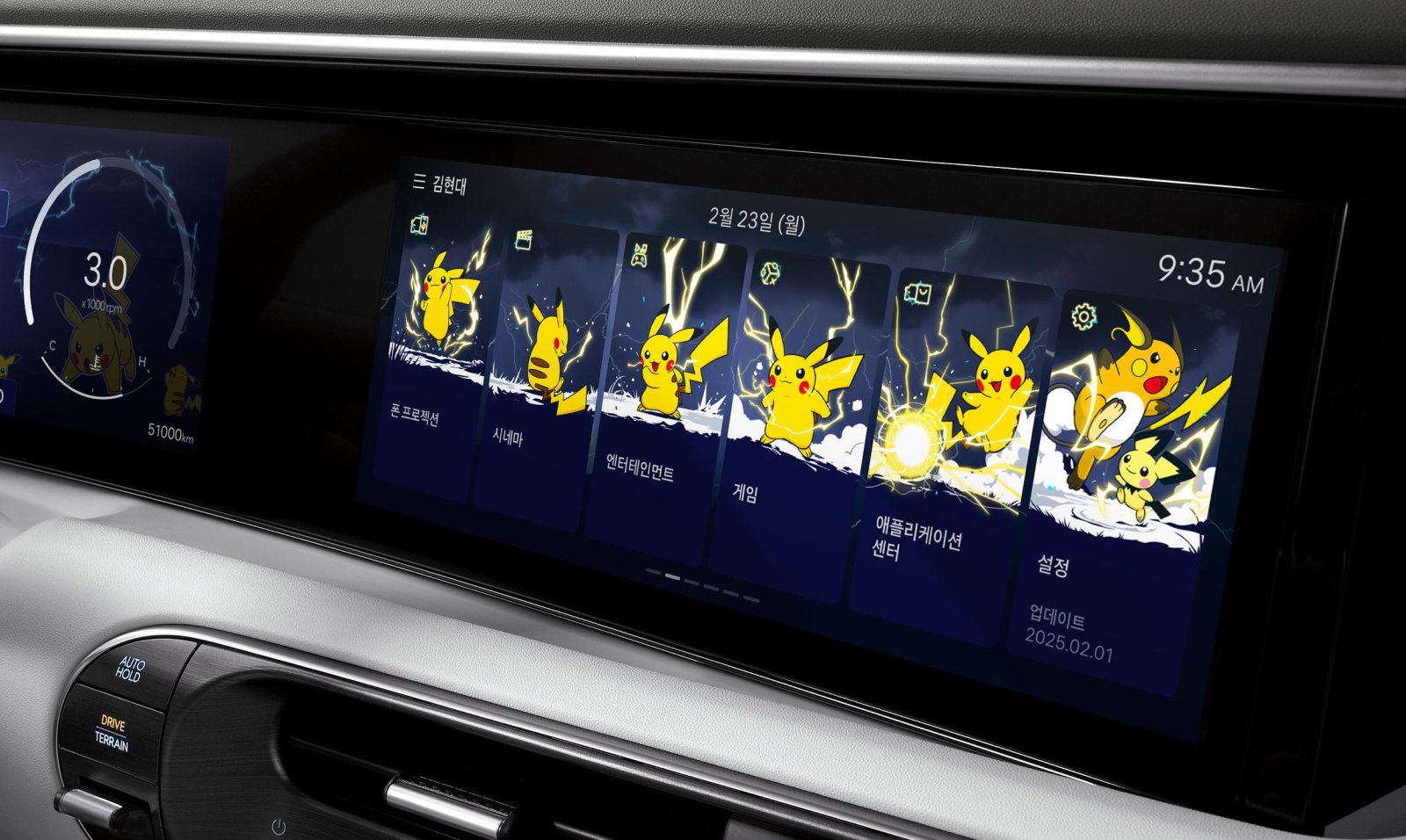 23일 현대차는 ‘포켓몬 피카츄 전광석화 테마’ ‘포켓몬 메타몽 월드 테마’를 출시한다고 밝혔다. 테마 적용 시 차세대 인포테인먼트 시스템 클러스터 디스플레이, 내비게이션 운행 정보, 시동을 걸고 끌 때 나오는 애니메이션 등에 포켓몬 디자인이 적용된다.