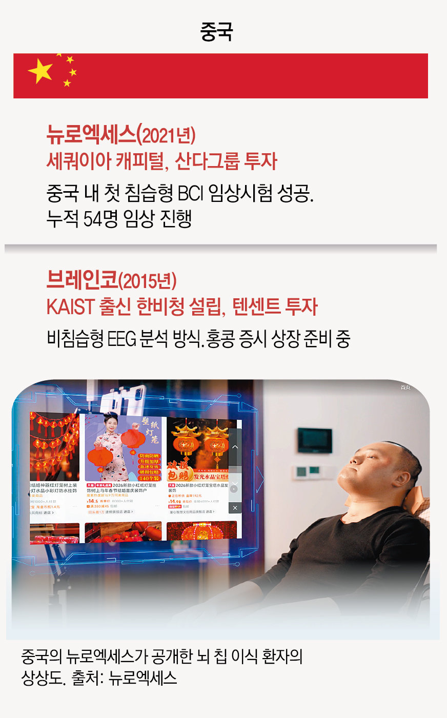 하지만 최근 중국의 BCI 기업들이 정부의 지원을 등에 업고 빠르게 뉴럴링크를 추격하고 있다. 23일 뇌공학 업계에 따르면 최근 중국의 BCI 기업 뉴로엑세스가 사지마비 환자의 뇌에 칩을 이식해 5일 만에 생각만으로 컴퓨터 커서를 제어하도록 하는 데 성공했다.