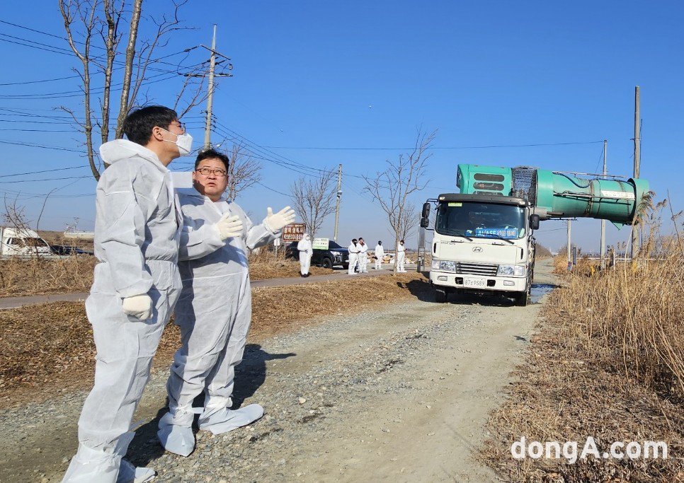 농협에 따르면 농협경제지주 임규원 영농자재본부장과 직원들은 지난 19일 전북 익산 지역농협이 운영하는 광역살포기와 드론을 활용해 경기도 평택시 일대 축사 주변 및 인근 지역에 대한 집중 방역을 실시했다.
