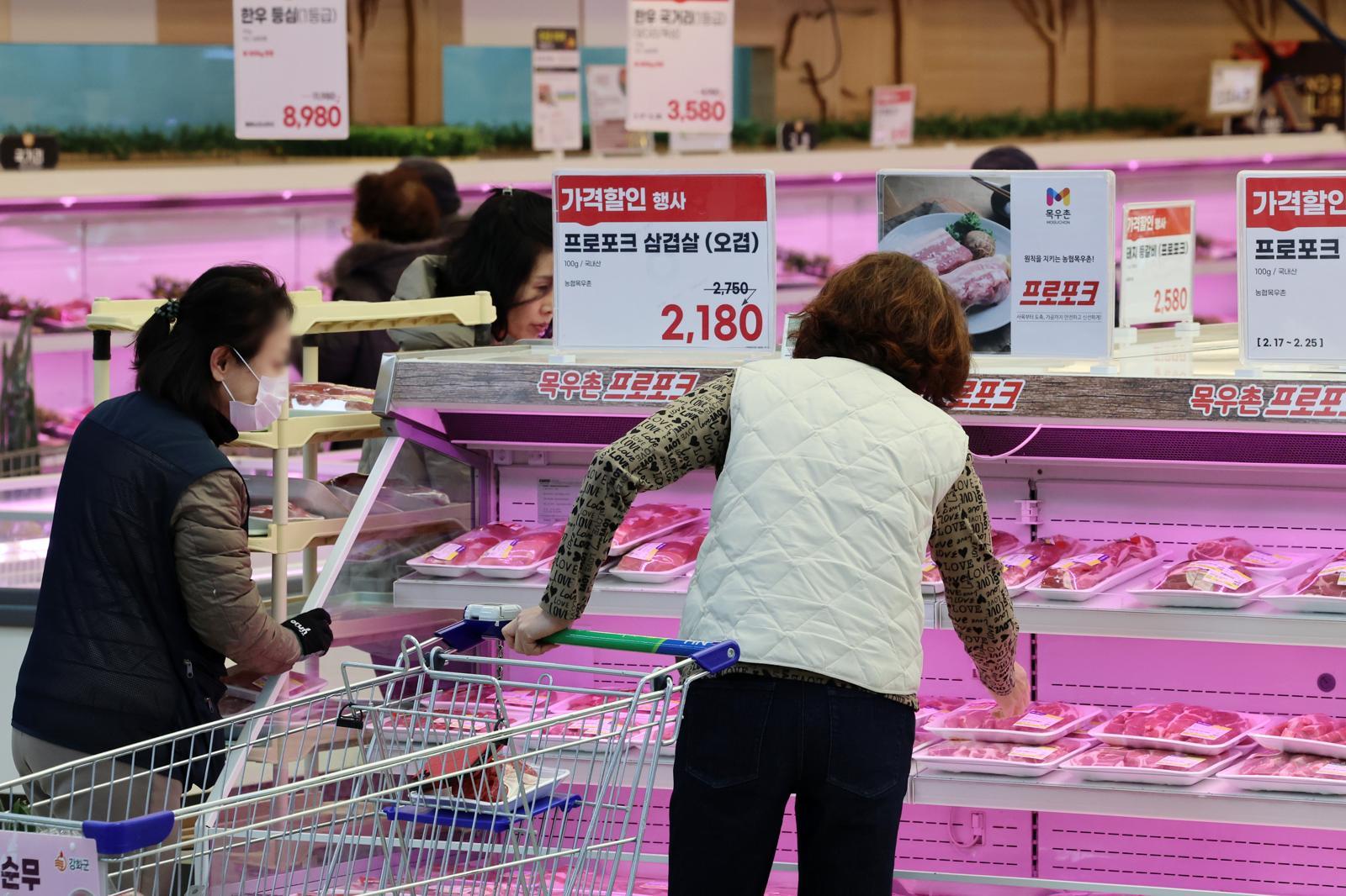 농림수산품과 서비스 물가 등의 영향으로 생산자물가가 5개월 연속 오름세를 이어가는 가운데 24일 서울 시내의 한 대형마트에서 고객이 축산품을 살펴보고 있다. 한국은행이 발표한 ‘올해 1월 생산자물가지수(잠정)’에 따르면 지난달 생산자물가지수는 122.50(2020년=100 기준)으로 전월 대비 0.6% 상승했다. 전년 동월 대비로는 1.9% 올랐다. [서울=뉴시스]