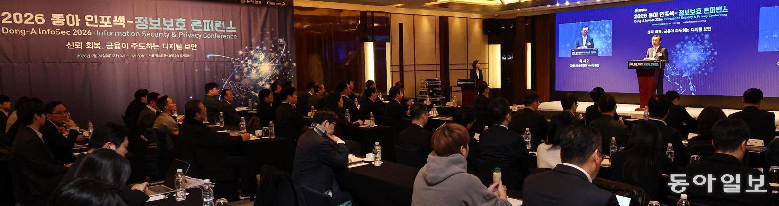 동아일보와 채널A 주최로 24일 오전 서울 중구 웨스틴조선호텔에서 열린 ‘2026 동아 인포섹-정보보호 콘퍼런스’는 ‘신뢰 회복, 금융이 주도하는 디지털 보안’을 주제로 진행됐다. 이른바 ‘나쁜 AI’를 막기 위한 ‘착한 AI’ 활용 방안부터 스테이블코인 산업의 주도권을 가져가기 위한 금융권의 보안 및 신뢰 확보 전략까지 다양한 의견이 공유됐다.