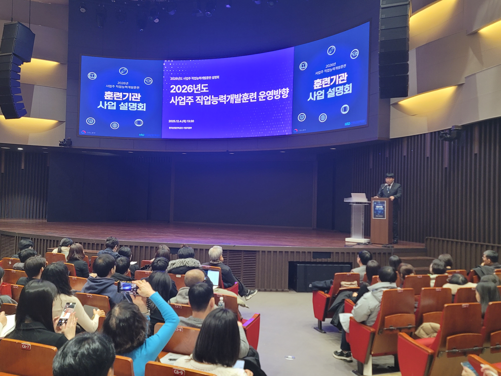 2025년 12월 4일 ‘2026년 사업주 직업능력개발훈련 운영방안 설명회’에서 약 500명의 훈련기관 및 기업 관계자를 대상으로 중소기업 AI 지원 훈련에 대한 현장 의견을 청취했다. 한국산업인력공단 제공