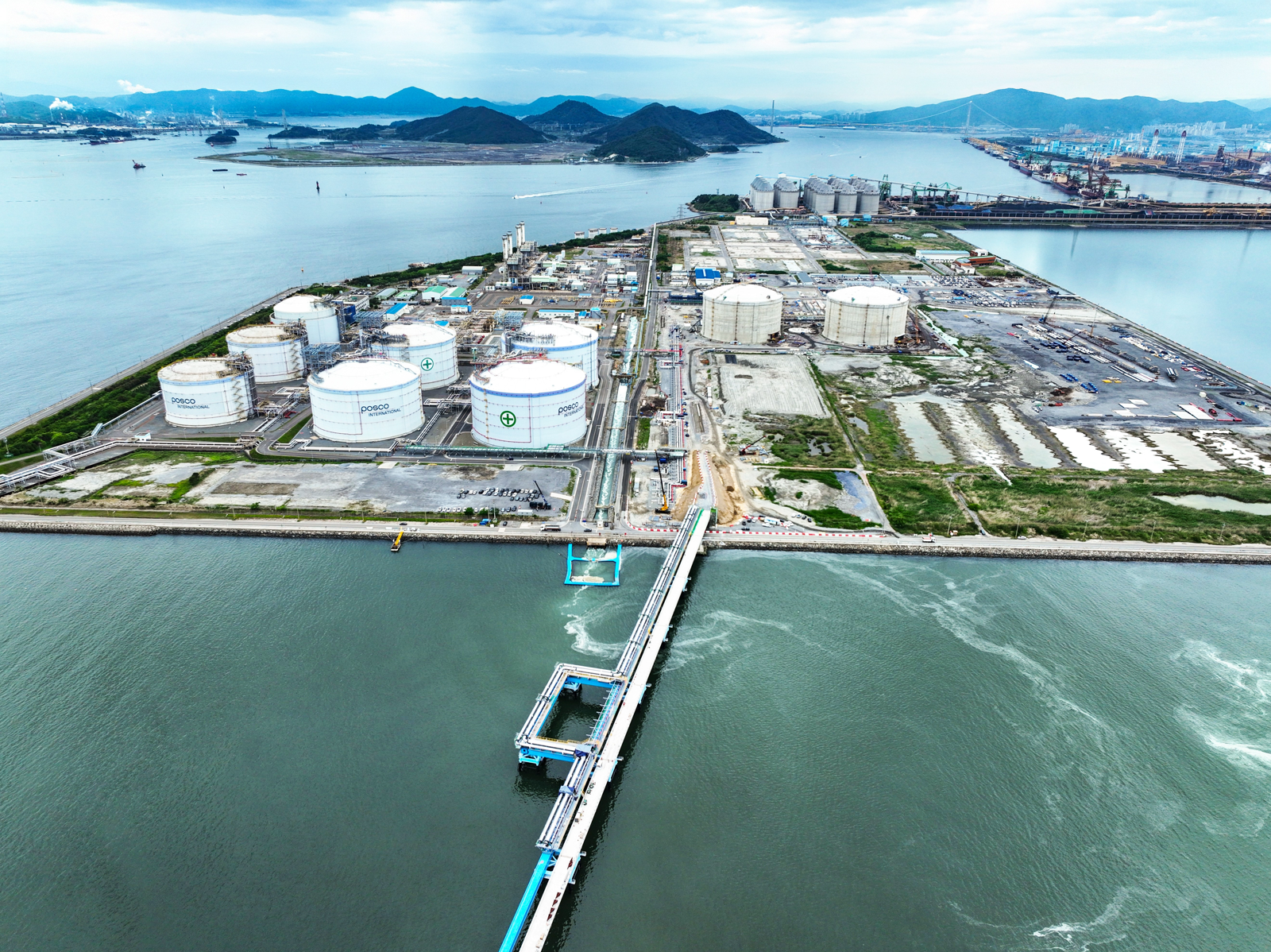 포스코이앤씨가 건설 중인 광양 LNG(액화천연가스) 터미널 모습. 포스코이앤씨는 독자적인 설계·시공 기술을 확보해 포스코그룹의 LNG사업 경쟁력을 높이고, 국가 차원의 에너지 안보에도 일조하고 있다. 포스코이앤씨 제공