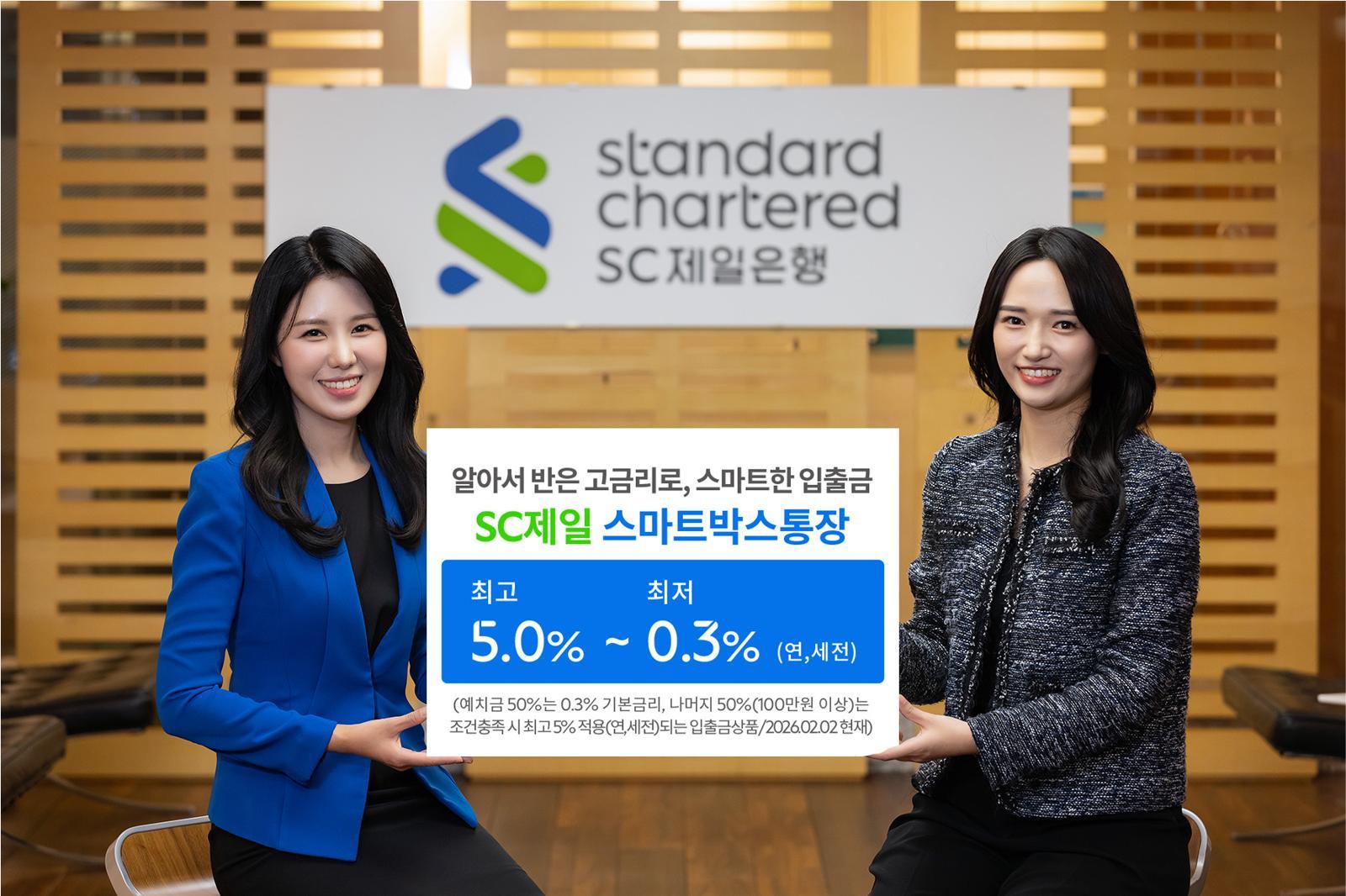 SC제일은행은 예치금의 절반에 대해 최고 연 5.0%(세전)의 금리를 제공하는 ‘SC제일 스마트박스통장’ 가입 이벤트를 진행하고 있다.