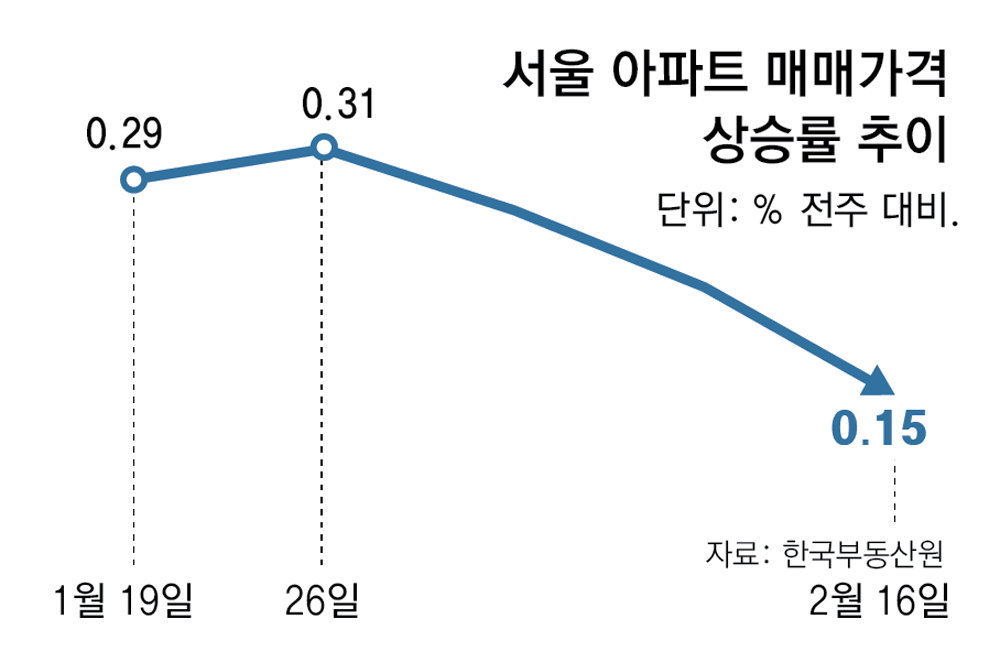 서울 아파트 가격 상승세도 둔화되며, 특히 강남구의 경우 사실상 보합으로 돌아섰다는 평가가 나온다. 한국부동산원 주간통계에 따르면 이달 16일 기준 강남구 아파트 가격 상승률은 0.01%로 전주(0.02%)보다 오름세가 둔화됐다. 하락세로 전환되면 2024년 3월 둘째 주 이후 처음이다. 실제로 강남구 압구정동 신현대아파트에서는 전용면적 183㎡가 이달 초 98억 원에 거래돼 토지거래허가 신청 결과를 기다리는 것으로 전해졌다. 같은 평형대는 지난해 말 128억 원에 거래된 바 있다.