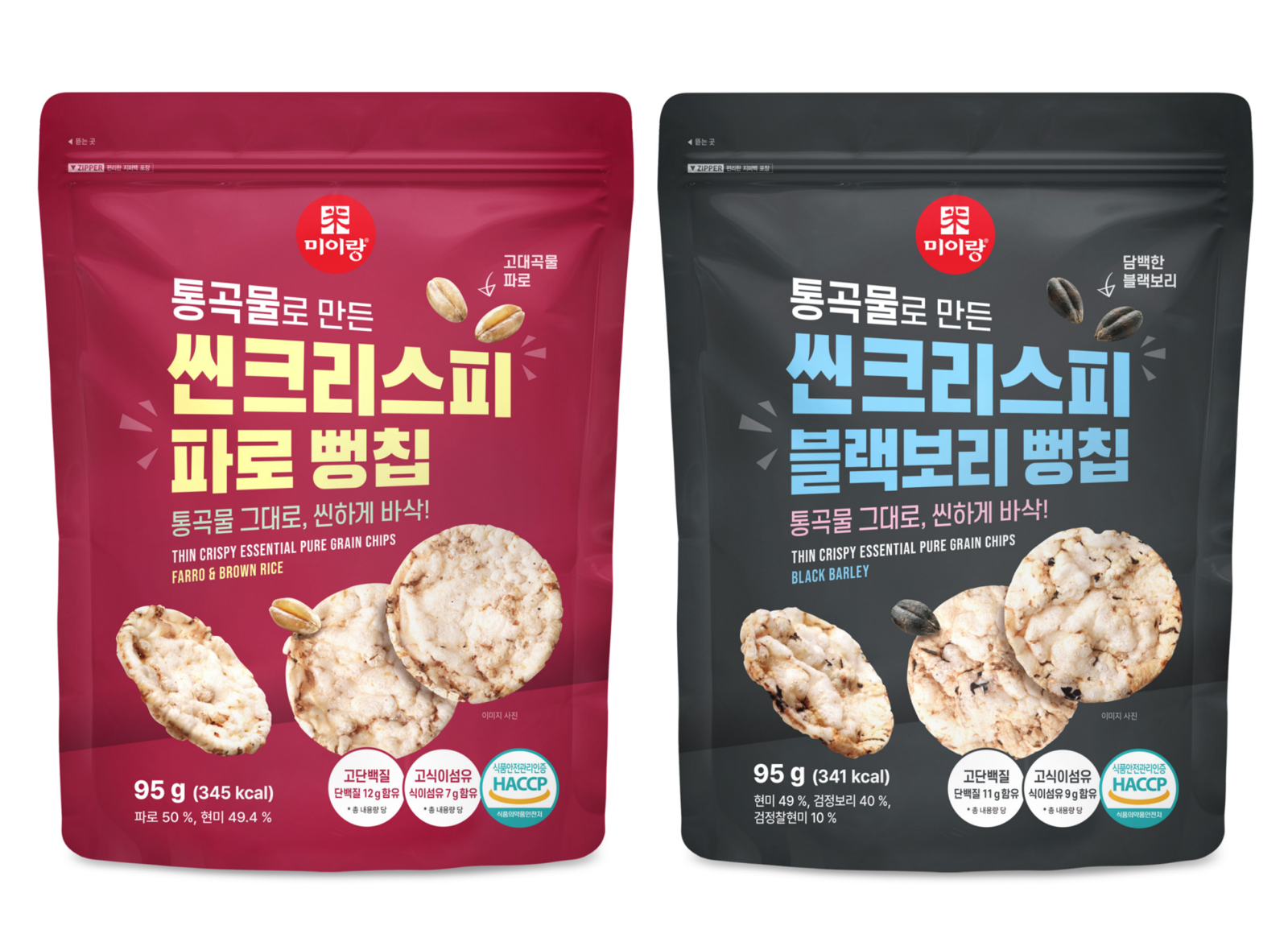 원물 구성 역시 이색 통곡물을 활용해 차별화했다. ‘씬크리스피 파로 뻥칩’은 저당 수요를 반영해 고대 곡물로 각광받는 ‘파로’를 50% 함유하고 ‘씬크리스피 블랙보리 뻥칩’은 검정보리·검정찰현미 등 100% 국산 잡곡만을 사용해 본연의 고소함을 극대화했다. 두 제품 모두 고단백·고식이섬유 영양 설계를 바탕으로 개발돼 부담 없이 즐기는 일상 간식으로 자리 잡을 것으로 기대된다. 씬크리스피 뻥칩 2종은 롯데마트와 슈퍼 전 점에서 7990원에 만나볼 수 있다.