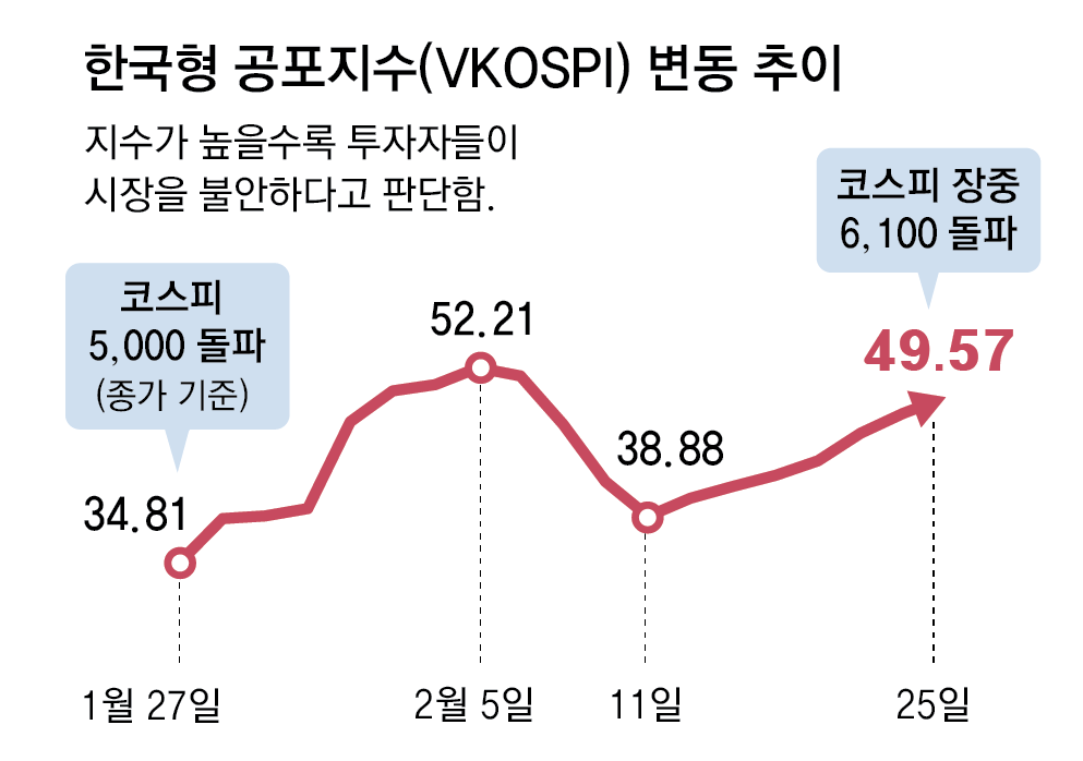 다만 실물경기가 뒷받침되지 않은 상황에서 유동성에 의존해 오른 증시는 금리 상승 국면에서 급격하게 하락할 수 있다는 지적도 나온다. 지난달 취업자 수 증가 폭이 2024년 12월 이후 최저치이고, 실업률도 두 달 연속 4%로 나타나는 등 실물경기와 증시의 온도 차도 커지고 있다. AI 투자 사이클이 둔화할 가능성도 변수다.