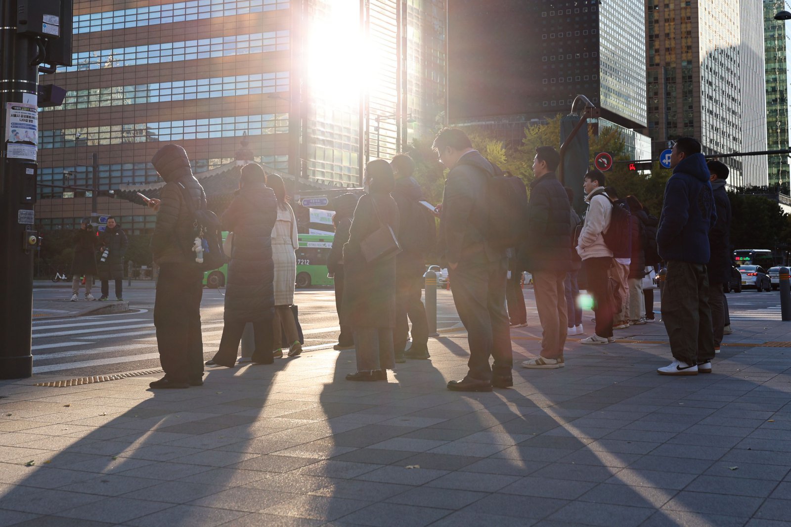 서울 아침 최저기온이 1도까지 떨어지며 첫 한파특보가 발령된 3일 오전 서울 종로구 광화문 네거리에서 직장인들이 출근하고 있다. 2025.11.03. [서울=뉴시스]