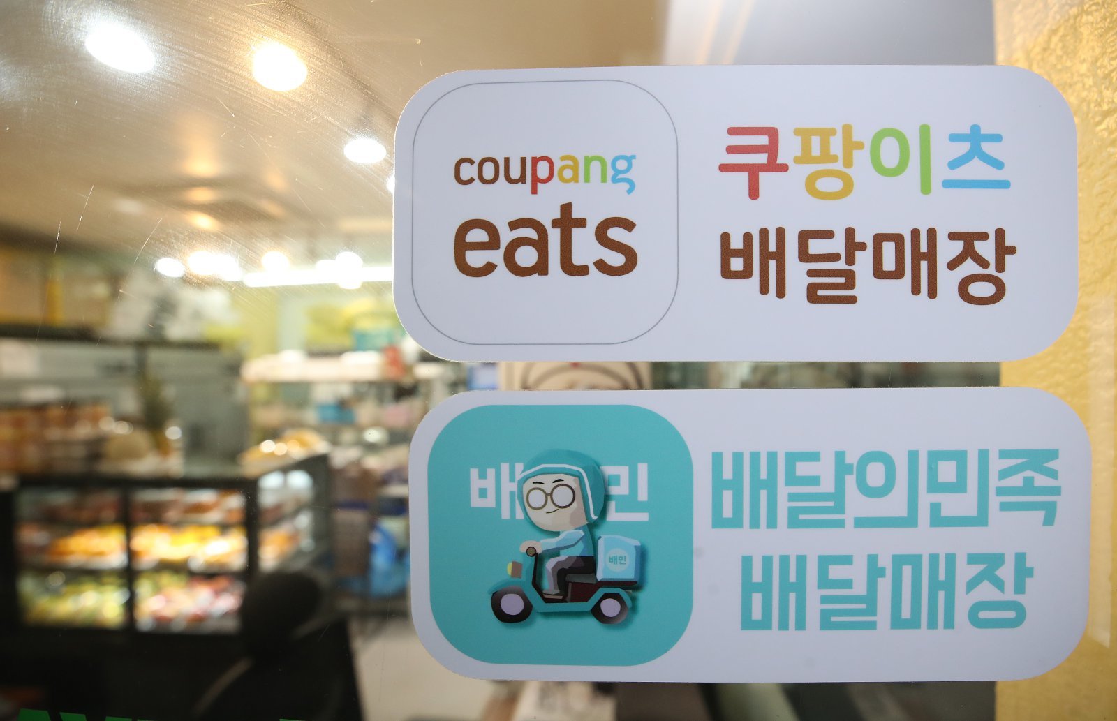 사진은 15일 서울시내 한 음식점에 붙어있는 배달의민족과 쿠팡이츠 스티커. 2024.11.15 뉴스1