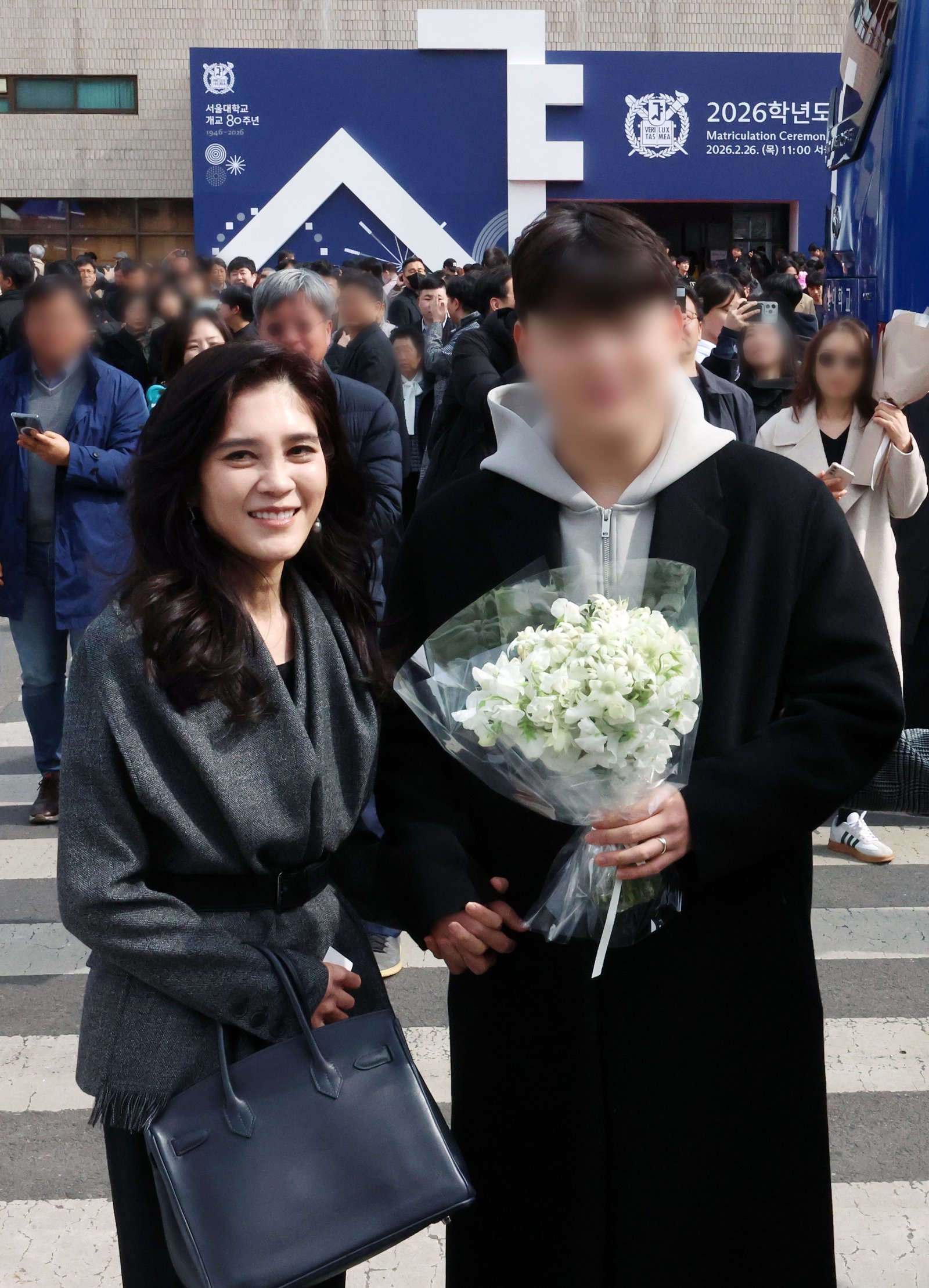이부진 호텔신라 사장이 26일 서울 관악구 서울대학교에서 열린 2026학년도 입학식에서 이 사장의 장남 임동현 군의 입학을 축하하고 있다. 2026.02.26 뉴시스
