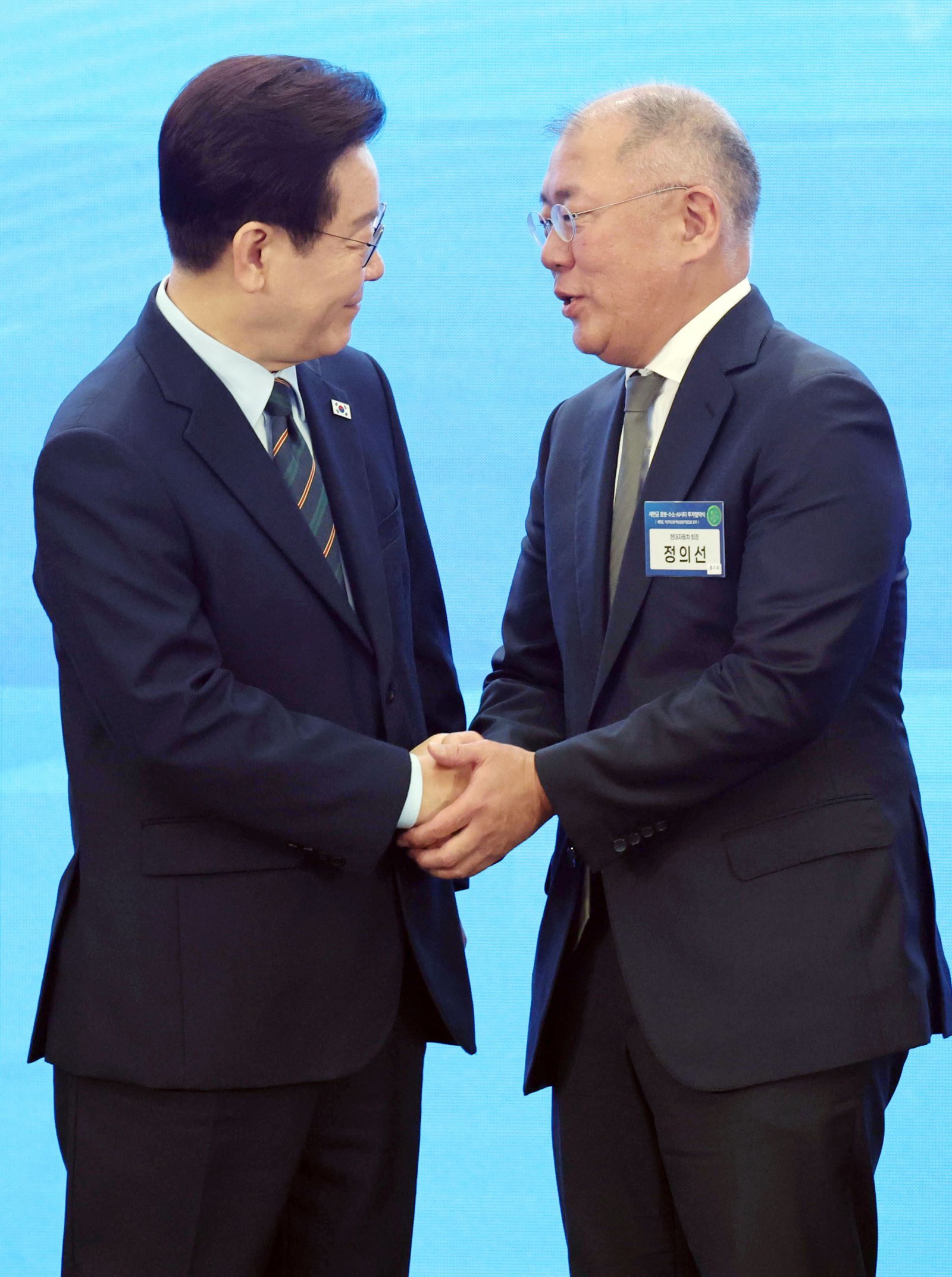 새만금 투자 정의선 손잡은 李 “정주영 회장님 자랑스러워할 것”