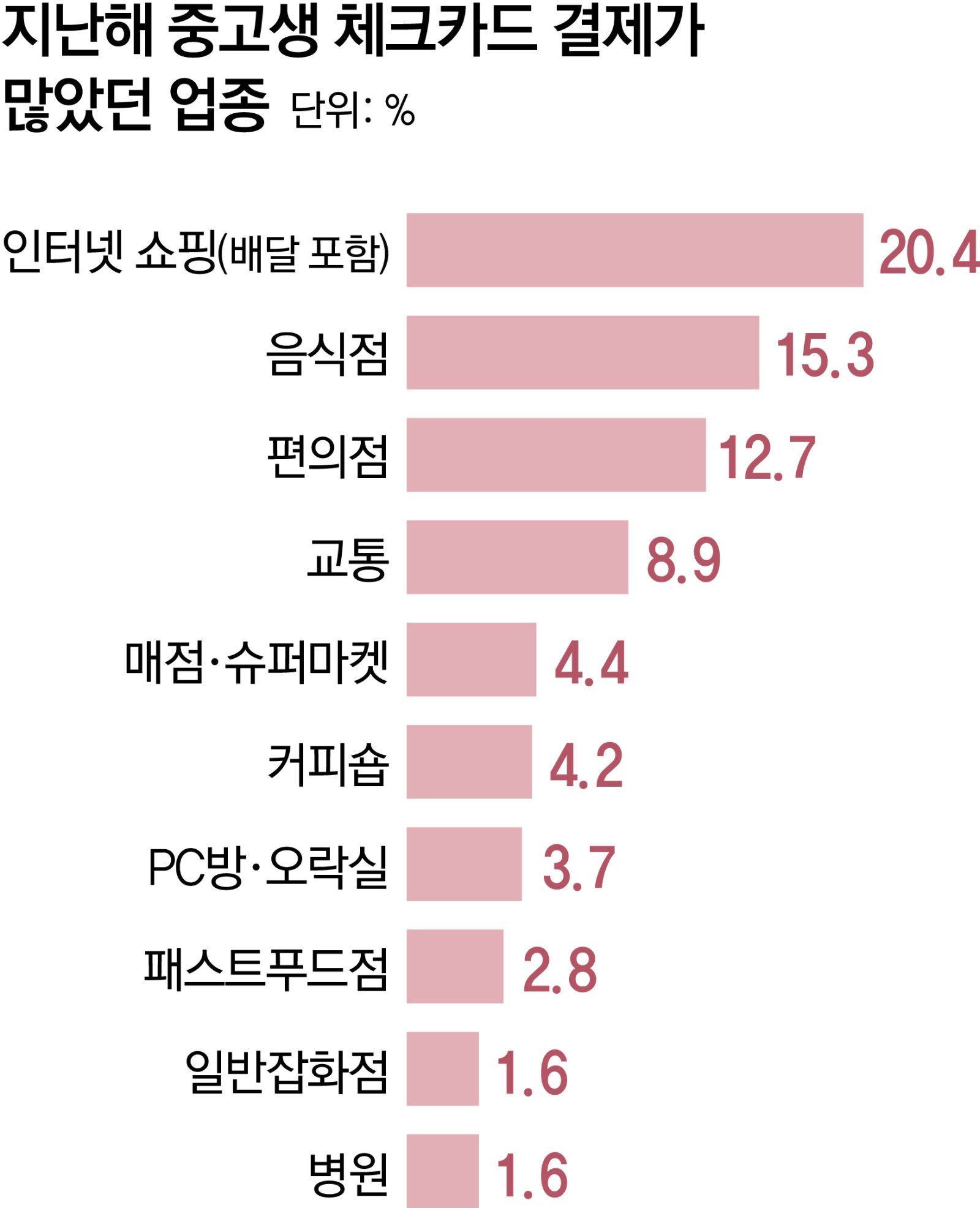 25일 낮 12시 반경 서울 강남구 대치 사거리 인근의 한 편의점. 사교육 중심지 대치 학원가를 오가는 10대 학생들이 이용하는 편의점에서 만난 직원 김성수 씨(36)는 현금을 보기 힘들다고 했다. 편의점은 점심 식사 뒤 간단한 간식과 필기구를 사려는 학생들로 북적였다. 중고등학생들은 부모님 신용카드나 청소년도 발급받을 수 있는 선불카드로 결제했다.