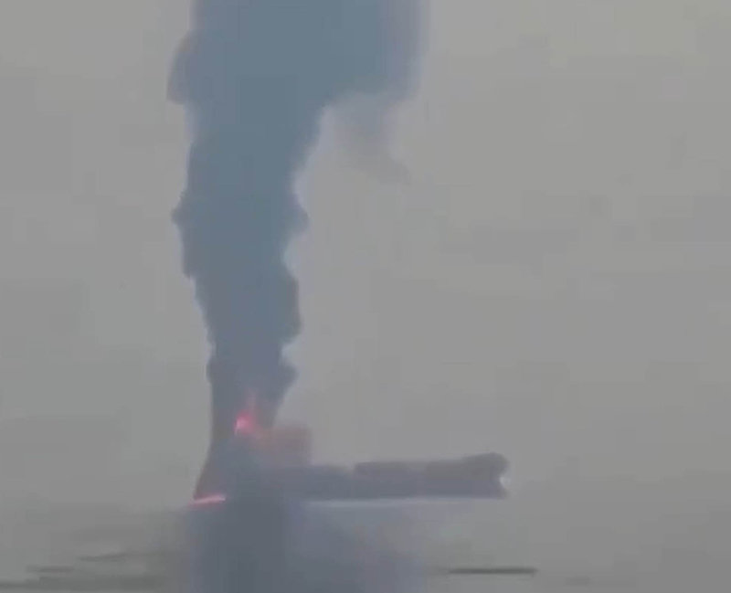 침몰하는 팔라우 유조선 모하마드 마란디 이란 테헤란대 교수가 1일 X에 게재한 영상으로 오만 인근 해상에서 호르무즈 해협을 통과하려던 팔라우 선적 유조선 스카이라이트호가 공격을 받고 검은 연기를 내뿜으며 침몰하는 모습. 모하마드 마란디 이란 테헤란대 교수 X 캡처