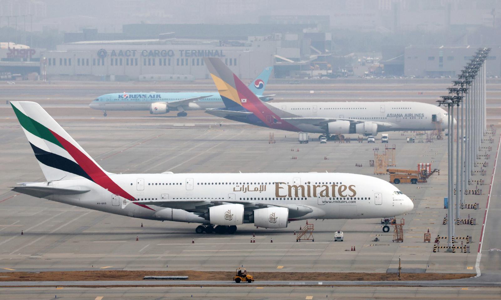 미국과 이스라엘의 이란 공습과 이에 맞선 이란의 보복으로 중동 하늘길이 사실상 마비된 가운데 5일 인천국제공항에 에미레이트 항공 여객기가 계류돼 있다. 2026.3.5 영종도=뉴스1