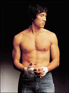 할리우드의 윌 스미스와 로버트 드 니로에 비견할 만한 ‘악바리’ 배우가 우리 영화계에도 있을까. 역시 권투영화에 출연하고 있는 유오성이라면 자격이 있지 않을까 싶다. 영화 ‘친구’에서 고교생 역할을 소화하기 위해 양 볼이 볼록해지는 주사까지 맞은 유오성은 곽경택 감독의 신작 ‘챔피언’에서 고(故) 김득구 선수 역을 맡아 6개월의 훈련 끝에 프로복서의 몸으로 완벽하게 탈바꿈했다. 최근 공개된 유오성의 상반신 누드사진을 보고 ‘컴퓨터그래픽 아냐?’라고 생각하는 사람들이 많을 정도로 그는 완벽하게 변신했다.