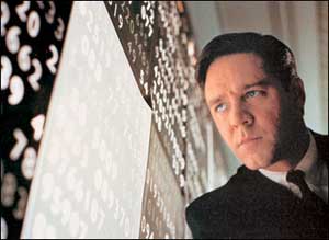 인간의 내면과 보편적 가치를 탐구하는 진지한 휴먼드라마, 불굴의 정신으로 이룬 업적, 감동적 연기 등이 할리우드의 최고 권위상인 아카데미가 선호하는 요소들이라면 ‘뷰티풀 마인드’는 이를 골고루 갖췄다. 천재의 외로운 영혼, 이를 감싸주는 아내의 헌신적인 사랑, 퇴행성 질환이라는 정신분열증을 극복해 낸 의지, 세계로부터 인정받은 업적…. 여기에 이 영화가 실존 인물이자 1994년 노벨 경제학상 수상자인 존 내시의 이야기를 다뤘다는 사실도 감동을 배가시키는 요인이다.