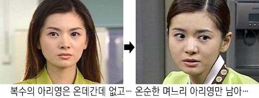 MBC ‘인어아가씨’에서 아리영과 남편 주왕의 단란한 모습. 그러나 이 드라마는 시청률을 의식한 무리한 연장 방영 탓에 극 전개가 엉뚱하게 바뀌었다며 종영을 촉구하는 사이버 시위를 불러 일으키고 있다. 사진제공 MBC