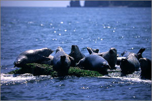 일명 ‘백령도 물범’으로 불리는 이들은 장어와 까나리를 사냥하기 위해 물속에서 합동 작전을 펼치기도 하고, 바위 위에 축 늘어져 하품을 하다가 휴식 공간을 둘러싸고 싸우기도 한다. 그러다가 겨울이 되면 다시 사라진다.
