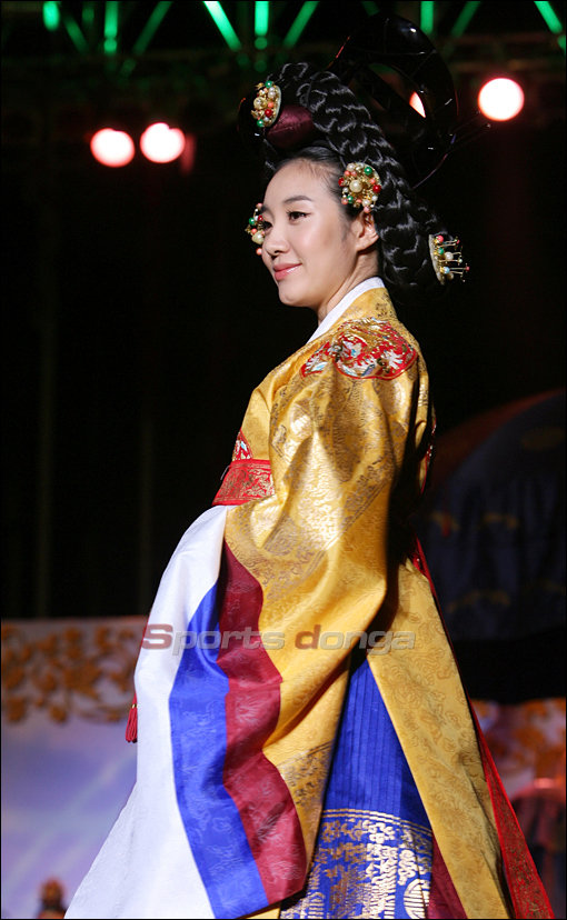 미스코리아 박샤론이 8일 오후 서울 강남 코엑스 야외상설무대에서 사랑나눔, 사랑실천 ‘자선릴레이 캠페인’의 일환으로 열린 황진이 전통의상 패션쇼에 모델로 나서 우아한 자태를 뽐내고 있다.