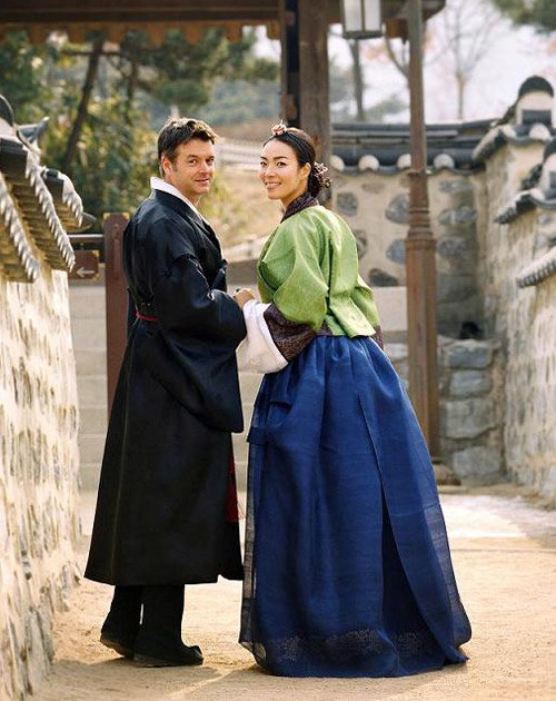 지미기-제임스 예비부부는 최근 서울 남산 한복마을에서 한복 디자이너 윤은숙씨가 디자인한 옷을 입고 촬영을 했다.