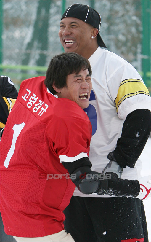 미국 프로풋볼(NFL) 한국계 스타 하인스 워드가 26일 오전 서울 송파구 마천동 안전공원에서 진행된 SBS ‘이경규 김용만의 라인업’의 녹화현장에서 맹활약을 펼치고 있다.
