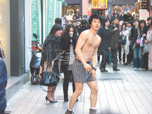 김지훈은 28일 방송한 ‘우리 집에 왜왔니’ 첫 회에서 서울 명동 한복판을 팬티만 입고 뛰었다. 극중 천억대 갑부의 데릴사위인 조기동 역을 맡은 그는 제작 발표회 때 이 장면을 가장 힘들었던 순간으로 꼽았다. 드라마에서는 몇분 정도 등장했지만 실제로는 3주에 걸쳐 3번이나 명동에서 촬영했다. 김지훈은 “그 중 하루는 3.1절이어서 북적거리는 공휴일 인파 속을 팬티만 입고 돌아다녔다”며 “카메라도 멀리 있어 추운 것은 둘째 치고 나를 바라보는 주위 시선이 힘들었다”고 말했다.