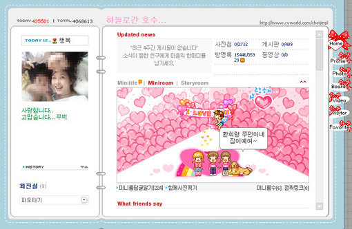 최진실의 미니홈피에는 ‘하늘로 간 호수’라는 제목으로 두 아이와 한가로이 찍은 사진 위 아래에 ‘행복’과 ‘사랑합니다. 고맙습니다’라는 글귀가 올라와 있어 안타까움을 더하고 있다.
