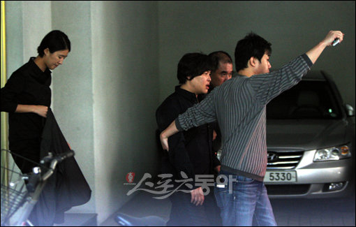 2일 오전 연기자 최진실씨가 잠원동 자택에서 사망했다. 홍진경과 이영자가 최씨의 자택을 나서고 있다.