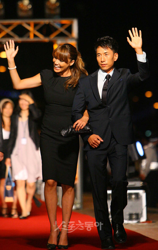 3일 오후 부산 해운대에서 진행된 제13회 부산국제영화제 Star Road Carpet에서 문 블러드굿과 제임스 카이슨 리가 레드카펫을 걷고 있다.