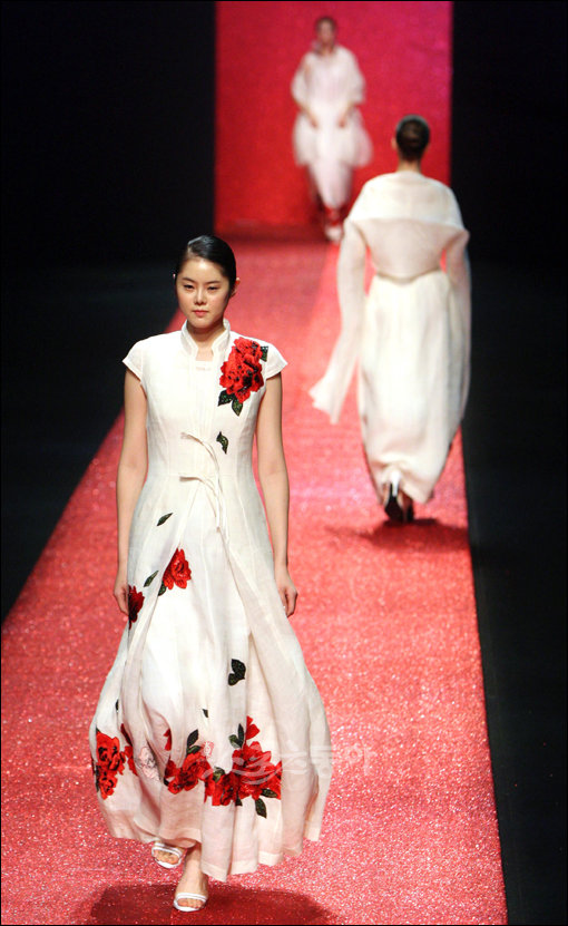 21일 서울 무역전시장(SETEC)에서 열린 SEOUL FASHION WEEK S/S 09 디자이너 정훈종의 패션쇼에 선 모델들이 화려한 워킹을 선보이고 있다.