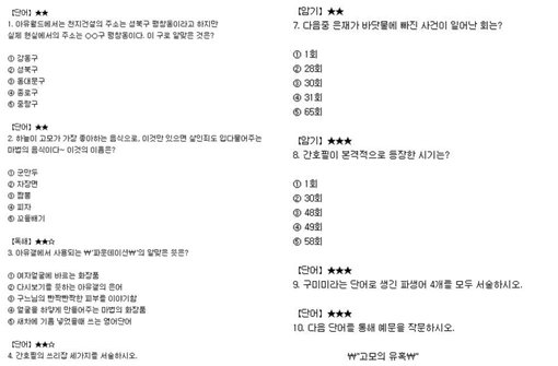 암기, 단어, 문법, 독해, 서술 등 5개 유형에 걸쳐 모두 20개 문항으로 이뤄져 있으며 난이도에 따른 가중치도 각 문제마다 매겨져 눈길을 끌고 있다.