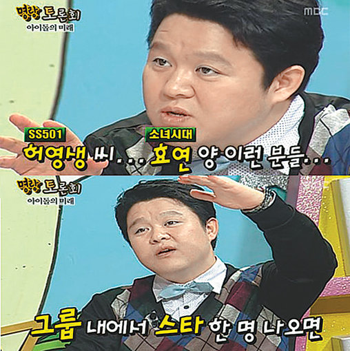 아이들 그룹의 미래에 대해 토론한 MBC ‘명랑히어로’에서 김구라는 그룹 SS501의 허영생과 소녀시대의 효연을 언급하며 아이들 그룹은 “한 명이 튀면 나머지 멤버도 덩달아 올라간다”고 발언했다.