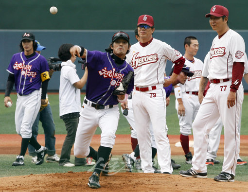 이날 게임은 양 팀의 실력차를 고려, 프로구단인 히어로즈는 6명만 수비에 나서고 원아웃에 이닝이 끝나는 핸디캡을 적용했다. 천하무적 야구단은 KBS 2TV 예능프로그램 ‘천하무적 토요일’의 인기코너로, 김창렬, 이하늘, 임창정, 오지호 등이 소속돼있다.