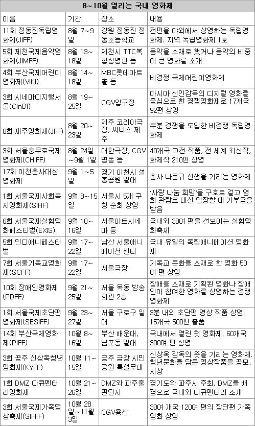 8월부터 10월까지 3개월 동안 열리는 영화제만 17개.