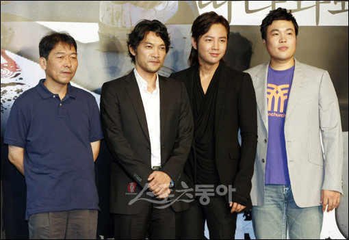 11일 오전 서울 압구정 예홀에서 열린 영화 ‘이태원 살인사건’의 제작보고회에 참석한 홍기선 감독, 배우 정진영, 장근석, 신승환(왼쪽부터)이 포즈를 취하고 있다.