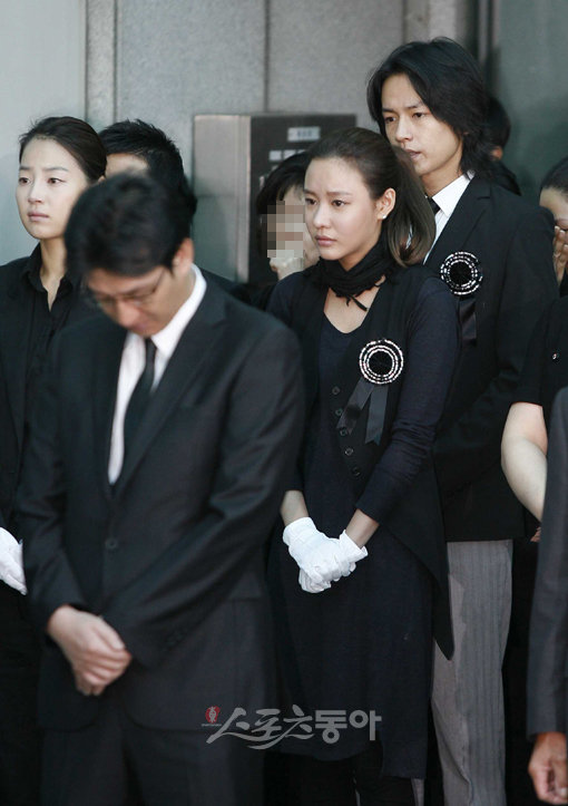 4일 오전 서울아산병원에서 故 장진영의 발인식이 진행됐다. 발인식에 참석한 한지혜, 김아중, 임주환. 임진환 기자 photolim@donga.com