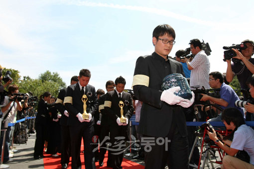 4일 오후 경기도 광주시 분당 스카이캐슬 추모공원에서 열린 故 장진영 추모식에서 고인의 영정과 유골함이 추모관으로 향하고 있다. 광주(경기) | 임진환 기자 photolim@donga.com