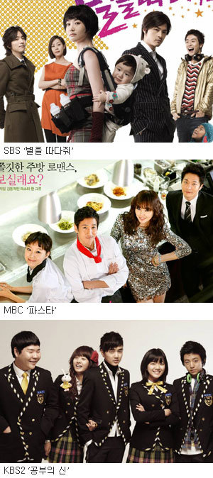 SBS는 내년부터 오후 9, 10시대에 드라마 두 편을 연속 방영하기로 했다. ‘천사의 유혹’ 후속으로 보험사 직원 진빨강(최정원)과 변호사 원강하(김지훈)의 사랑을 그린 ‘별을 따다줘’(오후 8시 45분·정지우 극본, 정효 연출)를 편성했고 이어 시대극 ‘제중원’(오후 10시·이기원 극본, 홍창욱 연출)을 방영한다. ‘제중원’은 백정 소근개(박용우)가 구한말 근대식 병원인 제중원의 의사가 되기까지의 성공담이다.