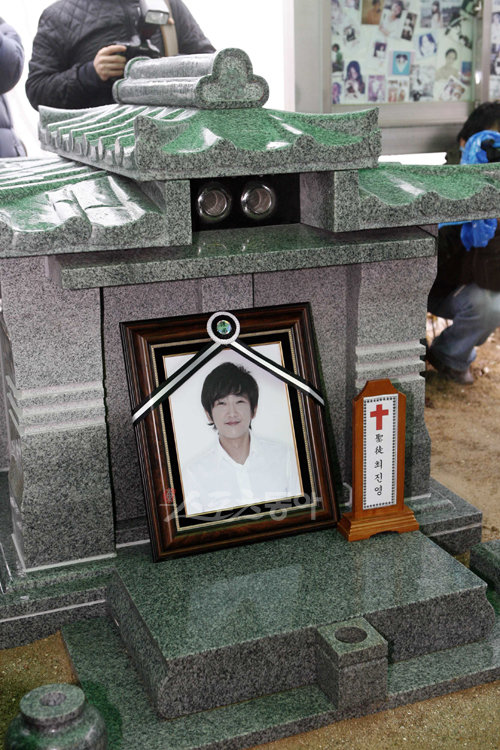 31일 故 최진영이 영면한 경기도 양평군 갑산공원. 고인의 누나인 故 최진실의 묘 옆에 임시봉안묘가 나란히 자리했다.