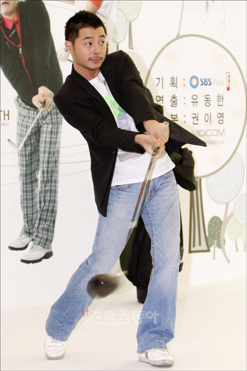 국내 최초 골프 시트콤 SBS E!TV ‘이글이글’의 제작발표회가 7일 오후 경기도 고양시의 한 모델하우스에서 진행됐다. 탤런트 김동현이 골프채를 들고 포즈를 취하고 있다.
