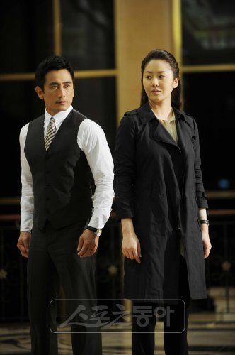 ‘카리스마 대결’. 톱스타 고현정(오른쪽)과 차인표가 8월31일 전남 담양 다이너스티CC에서 드라마 ‘대물’을 촬영하고 있다.