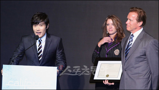 15일 서울 서초구 반포동 JW메리어트호텔에서 현대자동차와 캘리포니아 내 투자 증진 협력발표 행사가 로스엔젤레스 상공회의소와 캘리포니아 관광청의 주최로 열렸다.영화배우 이병헌이 관광홍보대사 임명 소감을 밝히고 있다.