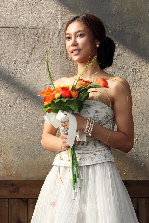 연기자 김인서가 16일 서울 강남구 논현동의 한 스튜디오에서 진행된 스타화보 촬영현장에서 순백의 웨딩드레스를 입고 매력적인 포즈를 취하고 있다.
