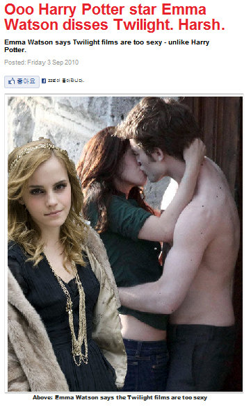 왓슨은 이어 “청소년을 상대로 만든 영화가 성적 묘사에 치중하는 것은 바람직하지 않다”고 ‘트와일라잇’의 선정성을 에둘러 비판했다.