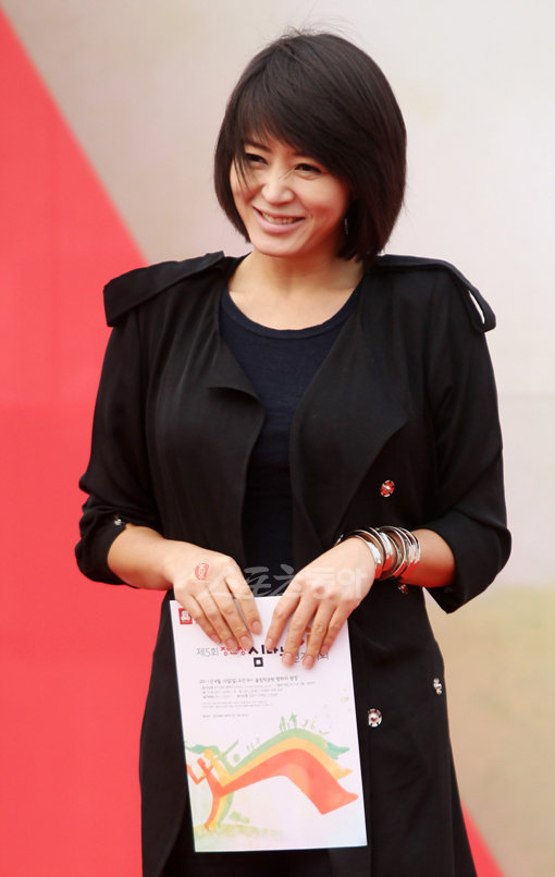배우 김혜수가 10일 오전 서울 송파구 방이동 올림픽공원 평화의 광장에서 열린 '제5회 심나는 걷기 대회'에 참가해 무대에서 밝게 웃고 있다. 김혜수는 최근 배우 유해진과 결별한 것으로 알려진 가운데 첫 공식석상에 모습을 드러냈다.