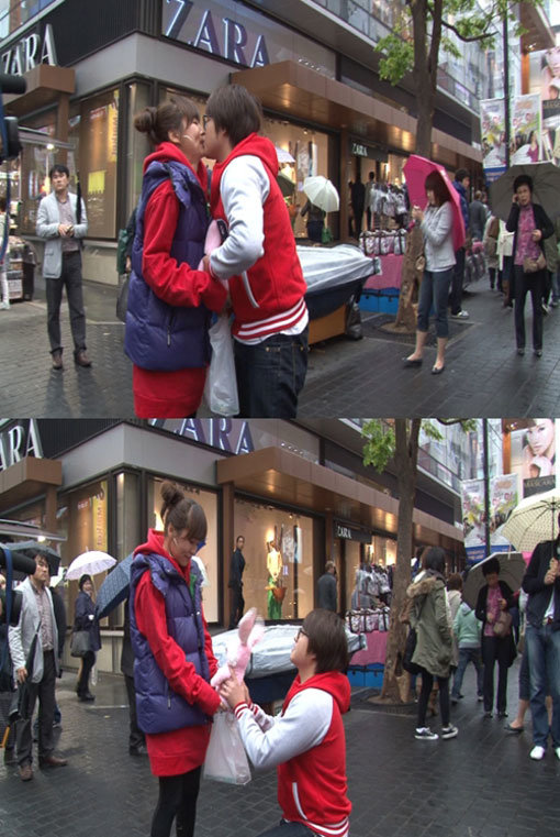 이들은 “평소 스킨십이 자연스러운 편이지만 막상 사람들 앞에서 키스할 생각을 하니 창피하다.”며 긴장한 모습을 보였다.
