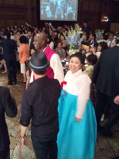 사진에는 한복을 곱게 차려입은 BMK와 신랑 맥시 래리 디렐씨의 모습이 담겨 있다.