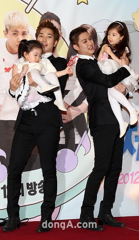 5인조 아이돌 그룹 엠블랙 멤버 지오와 승호가 16일 서울 강남구 노보텔앰배서더 강남에서 열린 KBS joy ‘헬로 베이비 시즌 5’ 제작발표회에서 포즈를 취하고 있다.